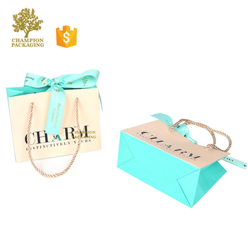 Özel Logo baskılı lüks kağıt torbalar takı bilezik ambalaj hediye alışveriş çantası şerit yakın